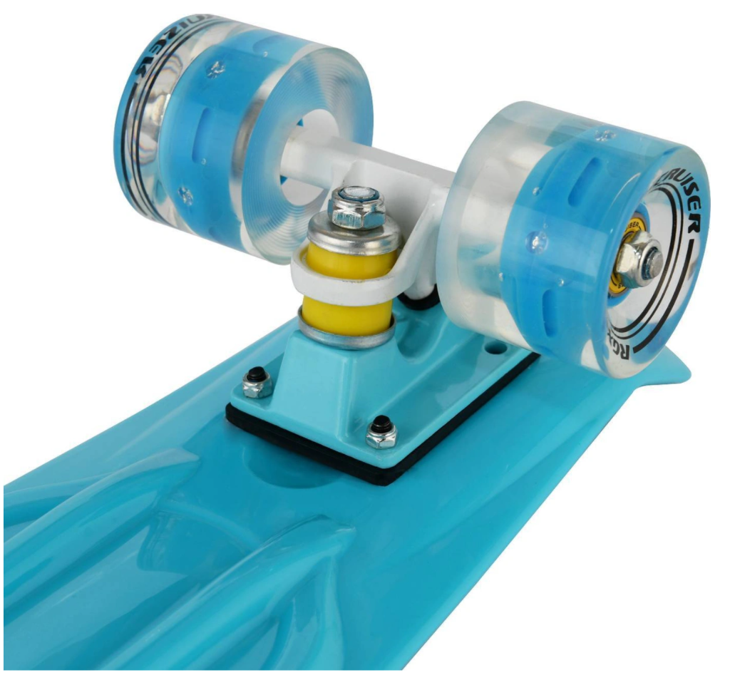 Универсальный мини-круизер PNB-01 со светящимися колесами – это невероятно яркий и интересный летний аксессуар. Благодаря продуманной конструкции и износостойким материалам, скейтборд выдерживает нагрузку до 100 кг. Модель подойдет, как для детей, так и взрослых. Прозрачные колеса со встроенной led подсветкой, которая загорается при движении. Это привлекает внимание всех окружающих в вечернее время суток и помогает оставаться замеченным для большей безопасности на дорогах. Катание на доске помогает развивать физические способности, чувство равновесия и выносливость. Отличная маневренность и легкость управления делают пенни-борд прекрасным средством передвижения на каждый день при любых погодных условиях. Прочная дека из полипропилена устойчива к повреждениям и царапинам, сохраняя свой превосходный внешний вид на многие годы. Рельефный рисунок на деке создает дополнительное сцепление с подошвой обуви для безопасного катания. Оптимальные размеры деки позволяют с комфортом размещать 2 ноги и чувствовать себя уверенно во время катания. Мягкие полиуретановые колеса с жесткостью 78А смягчают все неровности дороги и отлично амортизируют удары. Скоростные подшипники класса ABEC 7 обеспечивают плавный и быстрый разгон. Привлекательный дизайн в синем цвете, прочность и удобство делают мини-круизер отличной альтернативой велосипеду или городскому самокату.Особенности и преимущества: